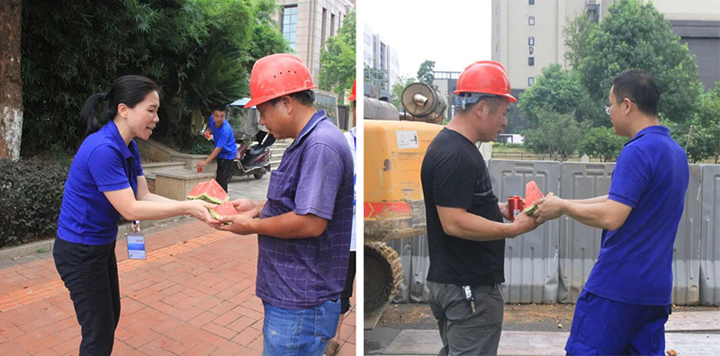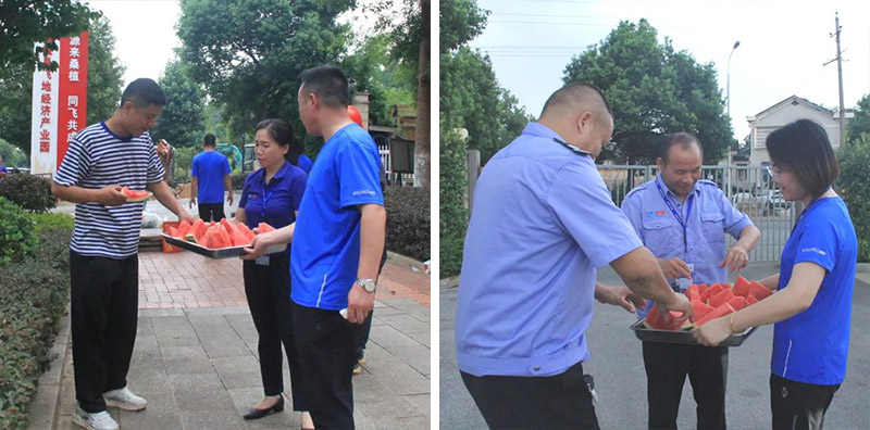 7月28日,波隆水務集團管理層為冒高溫、戰(zhàn)酷暑的生產一線職工送去公司的關懷與慰問。