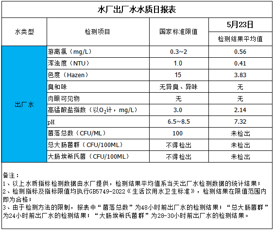 水廠出廠水水質(zhì)日報(bào)表(2025-5-23)
