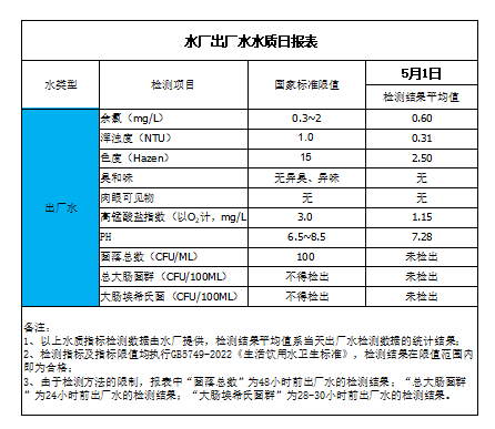 水廠出廠水水質日報表(2023-5-1)
