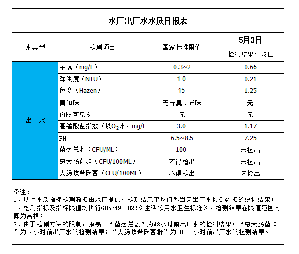 水廠出廠水水質日報表(2023-5-3)