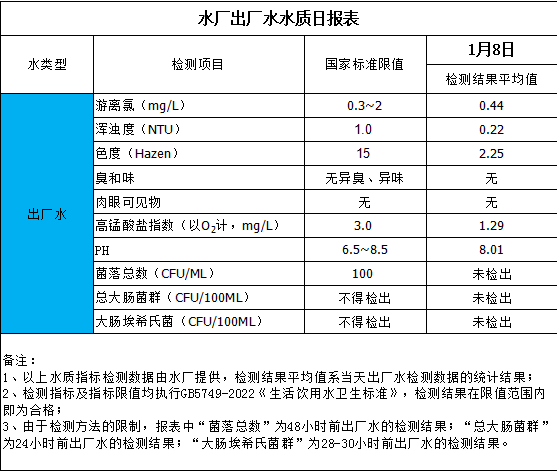 水廠出廠水水質(zhì)日?qǐng)?bào)表(2025-1-8)